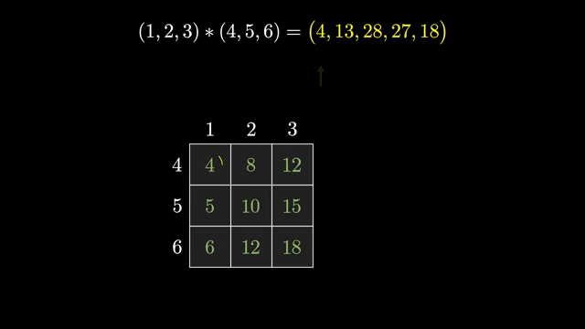 So diagonal sums in the product table are not a coincidence; they are the algebraic definition of how like terms combine.